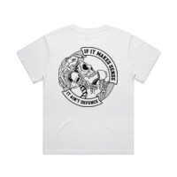 Get your favourite tee, lay it flat on the floor and measure it across the chest just under the arm and pick what size will fit best. Please note: measurements can vary within 2.5cm, this is within our tolerance.